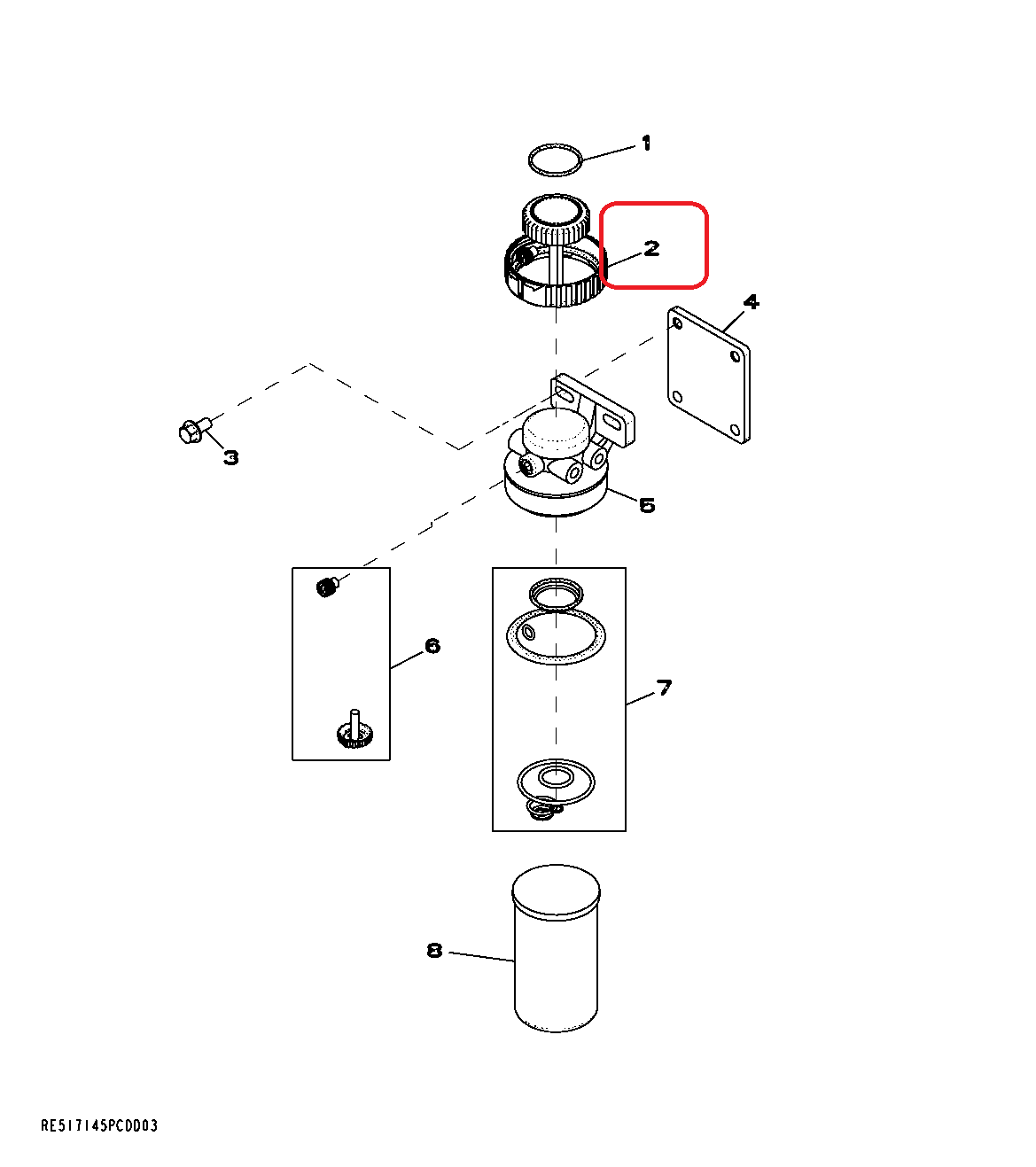 Sada vrchnáka palivového filtra RE526834 - Globallogging